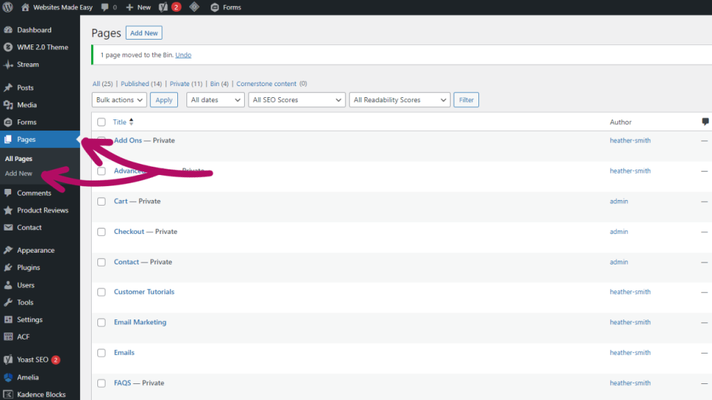 Starting on the dashboard, on the left hand side you will see a tab called Pages.