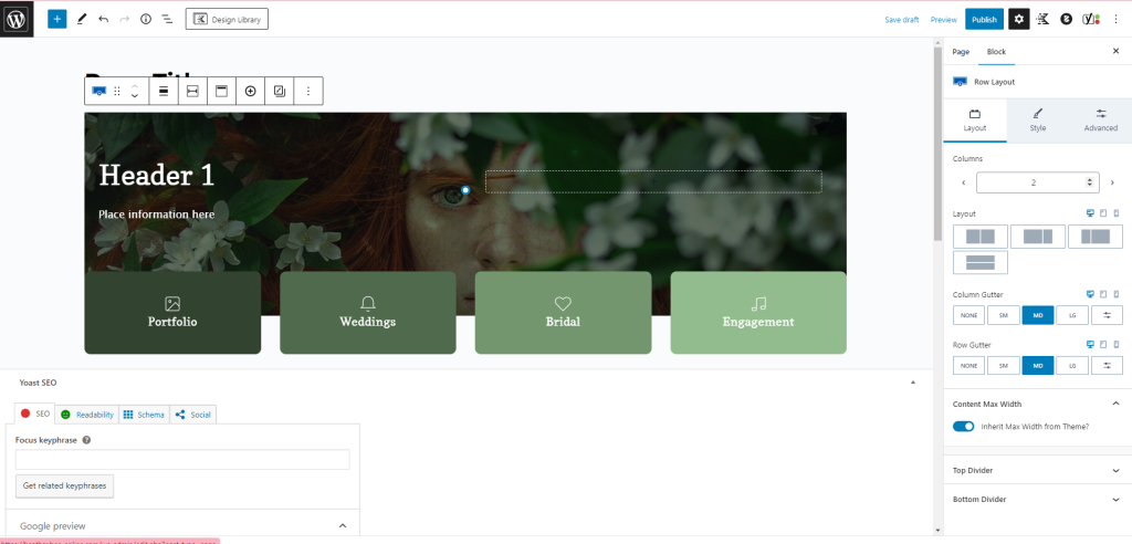 Once you have chosen the layout you like, it will load into the page like below: