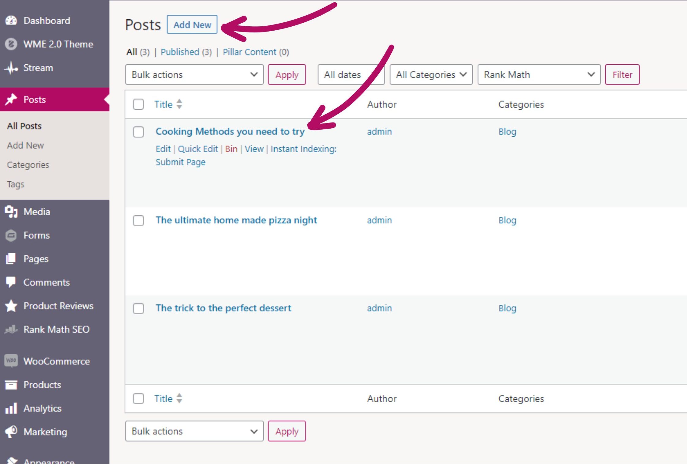 To begin, log in to the backend of your website, and head to “Posts“