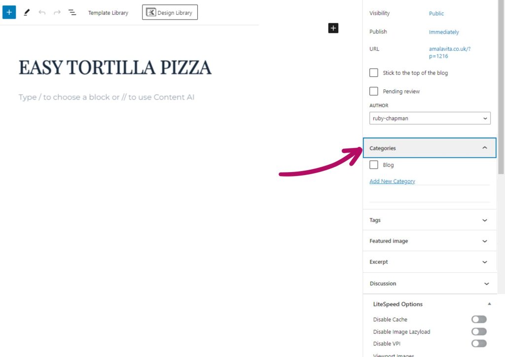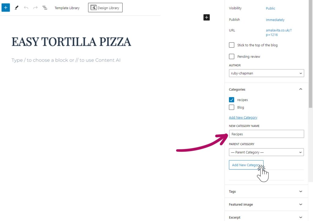 In the right hand side panel, you will also see an option to add a category.