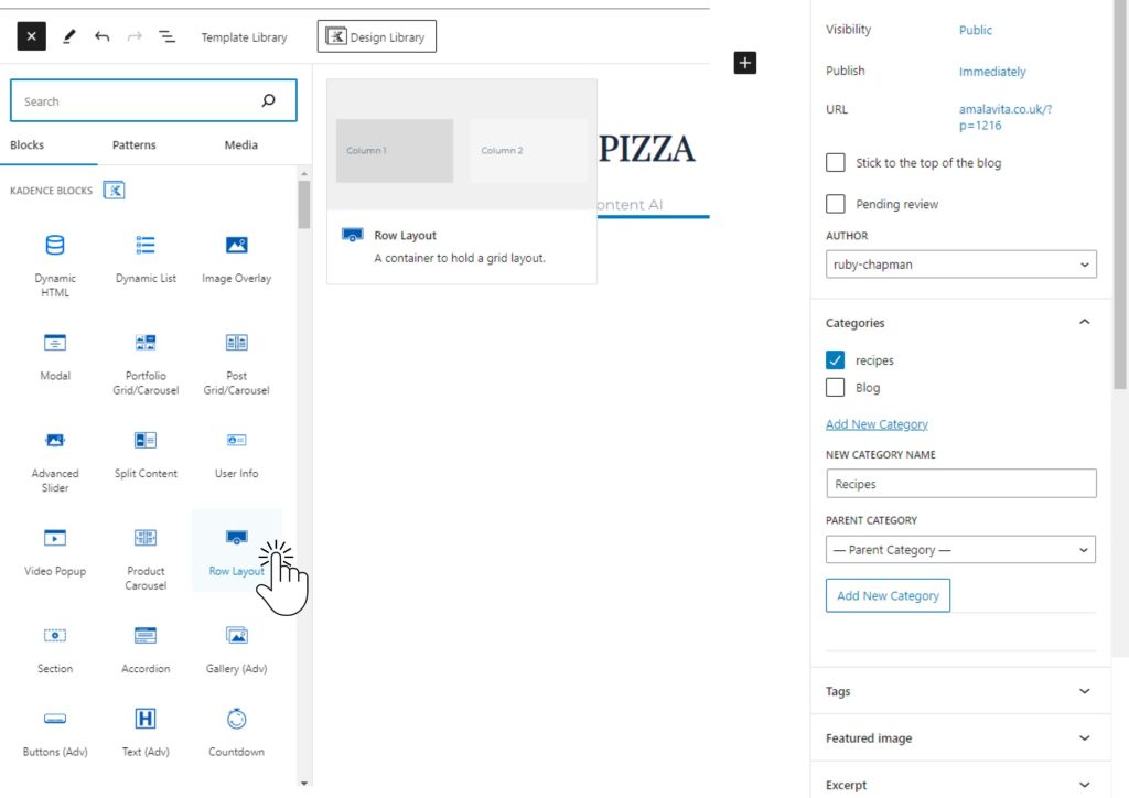 A great way to start, is with a “Row Layout” block.