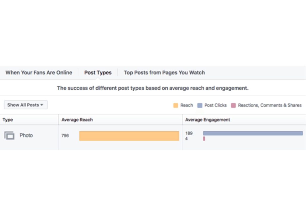 While there’s plenty of advice on which types of content resonate with social media users, the Post Types section provides a breakdown of each content type’s average reach and engagement. Use this data to tailor your content to your audience’s preferences.