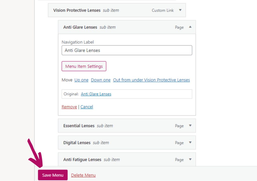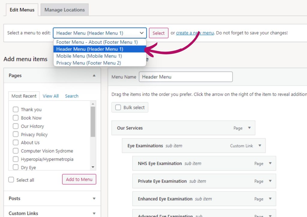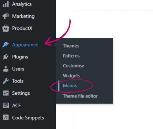 Navigate to Appearance > Menus using the left-hand sidebar.